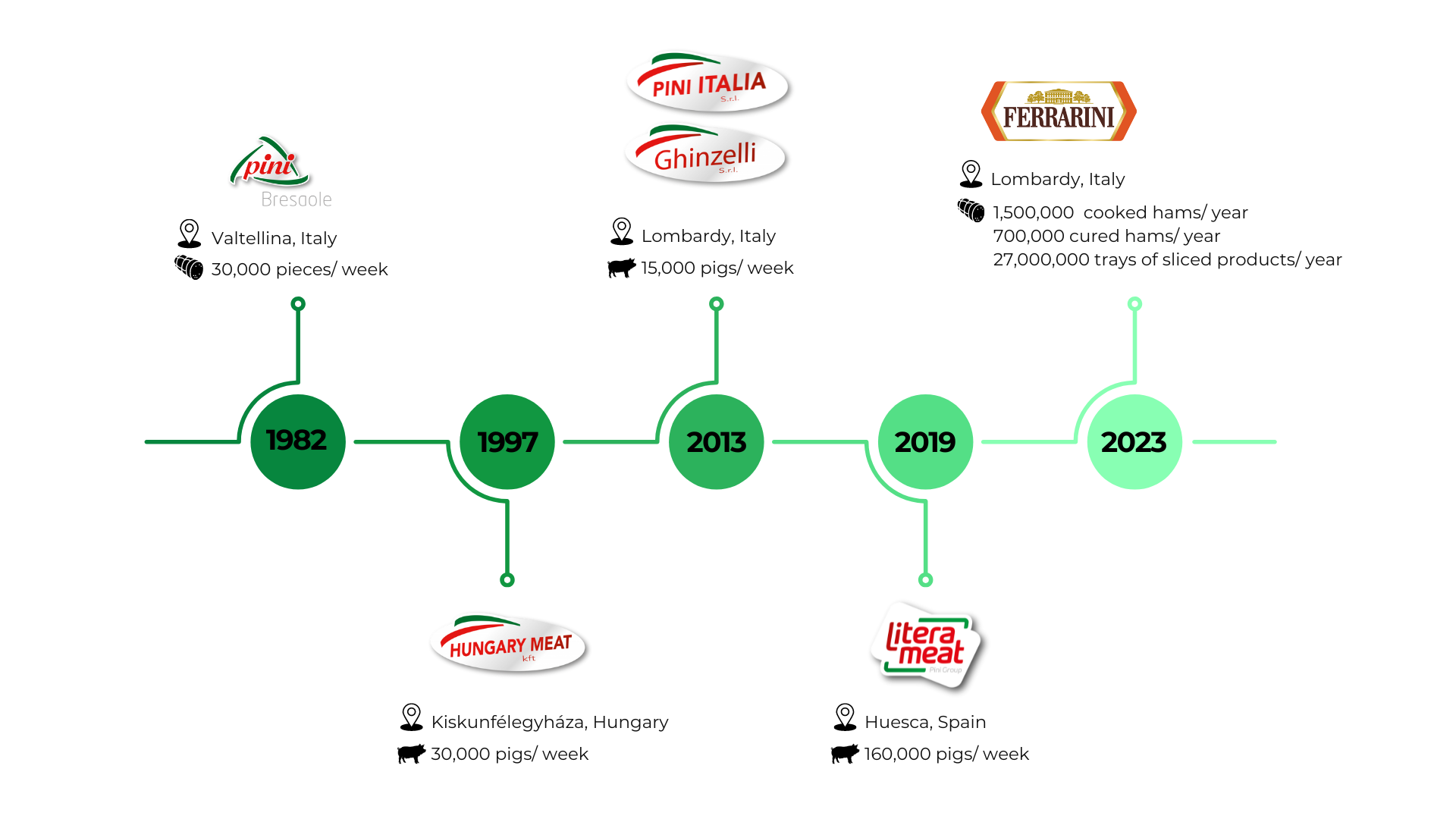 The Pini Group’s structure is made up of six reference meat industries in Italy, Spain and Hungary.